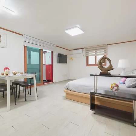 Il y a aussi une cuisine équipée dans la villa 서울 홍대 아지트게스트하우스 홍대입구역 7번출구 넓은공간 사랑스런집, équipée d'une bouilloire électrique, d'un réfrigérateur et de la vaisselle. Vous pourrez dîner au Hansot Dosirak, situé à 250 mètres. Cette propriété est également à seulement 5 minutes à pied de l'arrêt de bus Donggyodongsamgeori.